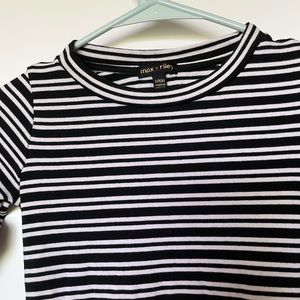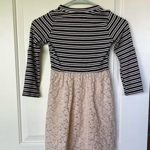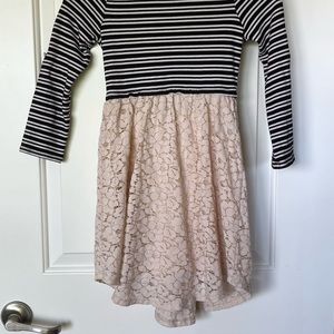 Description: Black and white striped shirt, lace on the skirt part, and buttons on the sleeve