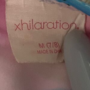 Girls medium (7/8) Xhileration pink with yellow, blue, green circles tankini