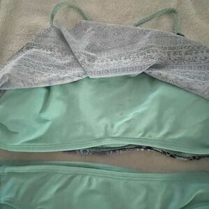 Girls medium turquoise southwest design ruffle flounce macrame Boho bikini