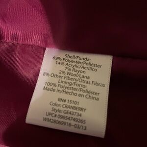NWOT and no defects. Size large 10-12 pink and black pea coat. Completely lined. Armpit to armpit is 17 1/2” and center back length is 22 1/2”. Tote 14.