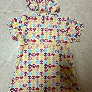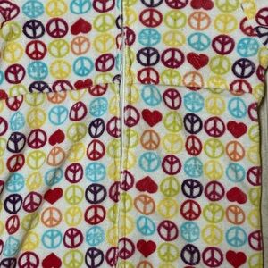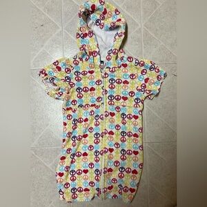 Girls peace sign bathing suit cover up, zip up towel material. Size 6x by Joe Boxer. Used condition, little bit of paint missing on zipper.