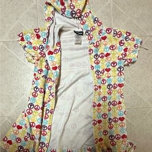 Girls peace sign bathing suit cover up, zip up towel material. Size 6x