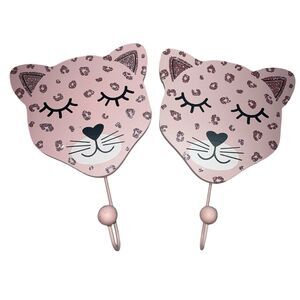 Girls pink leopard glittery cute girly room decor chic wall hook set of 2