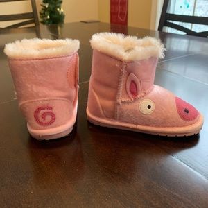 Shearling lined rubber soled pink boots. These boots are marked 12 to 18 months but fit more like a 5/6 in toddler