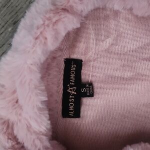 Girls size small pink fleece pullover with pocket and drawstring, nwt