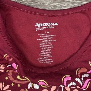 Girls Arizona brand top with quarter length sleeves. Maroon with design on the front with lace detailing. Size large