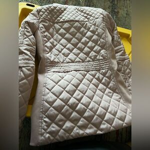 Girls quilted jacket with hood and zipper closure with snaps and pockets.