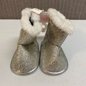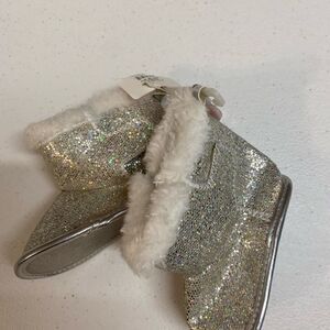 NWT girls rising star silver glitter soft sole Velcro boots