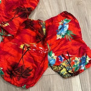 Super cute little girls short set. Got when we were in Barbados. Doesn’t have a size in it but the waist is very stretchy and our daughter wore from the age of 2 to about 4 y/o