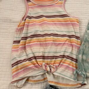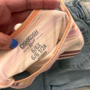All 3 items included in bundle. Two tanks and one pair of stretchy denim shorts. Tops are from Oshkosh, shorts are jumping beans. Everything in great condition