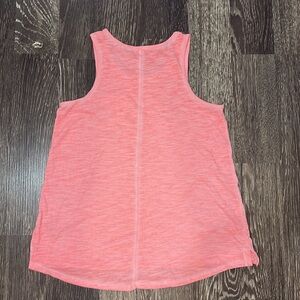 Girls tank tops. One is a light pink with a small pocket and fading detail throughout. It’s more of a cotton fabric feel. The second one is purple. Is more of an dri-fit feel.
