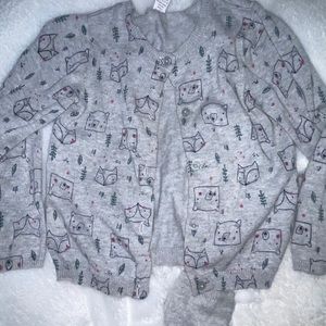 Lot of 2 cardigan sweaters. The red and gray is in perfect condition and is a thicker material. He beat printed one has a few light marks at front- see pics for more details.