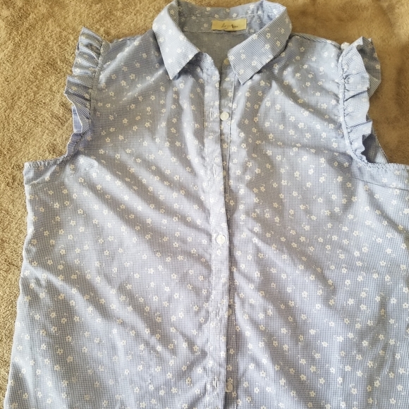 Pretty button down top with cute little flowers & ruffled sleeves.