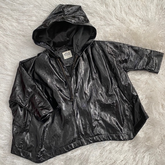 This is a patent leather rain jacket. It’s been gently used, in great condition. Such a cute jacket for any mini fashionista.