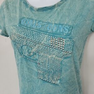 Girls with Guns Women's Medium Blue Short Sleeve Embellished Rhinestone Outdoors