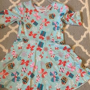 New with tags girls xsmall 4t/5t Christmas dress bundle. Red candy cane dress and blue presents dress.