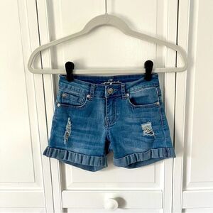 Girls 7 For All Mankind Cuffed Distressed Destroyed Denim Short Shorts Size 7
