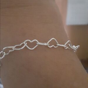 Girls 925 Sterling Silver Heart Chain Bracelet
