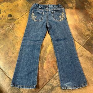 Girls Bundle 2 Pairs of Pants - Cheetah Pull-on Leggings, Snap with Elastic Waist Jeans. Measurements in photos. Some wear on the jeans, you can see this in photos. In good, pre-loved condition. Comes from a smoke free home.