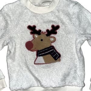 Cozy white sweater with a cute reindeer design. Perfect for festive occasions.