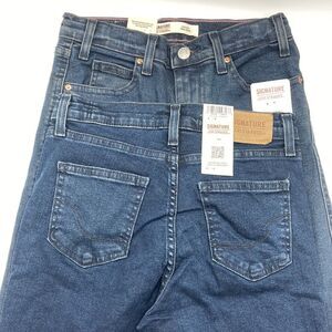 A high, elasticized waist and tapered leg give Signature by Levi Strauss & Co.™ Girls' Heritage Mom Jeans their name, but the on-trend destructed denim details will help her make them her own. The supersoft, vintage-inspired fabric stretches and moves with her throughout her busy day. Classic 5-pocket styling means she has plenty of places to stow her stuff, while the internal adjustable waistband makes it a cinch to get a customized fit.