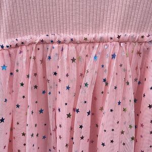 Introducing this fun Tutu Dress – a delightful blend of style and comfort that transcends every occasion. The Skirt steals the spotlight with Sparkling Foil in a variety of different patterns, adding a touch of glamour and magic to your little one's ensemble. The Soft Rib Bodice provides a comfortable and secure fit, while Layers of Soft Mesh with Lining create a voluminous and whimsical skirt that's perfect for twirling.