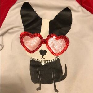 Top has a dog with sequins, glitter and jewel