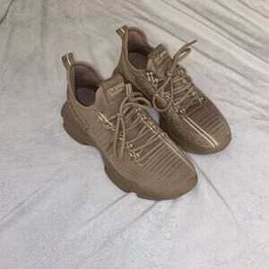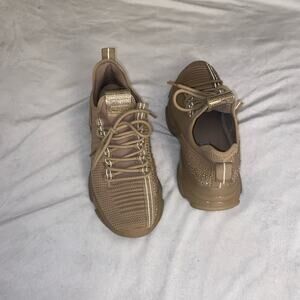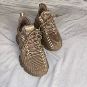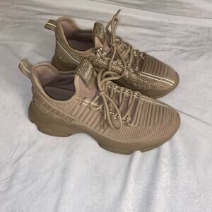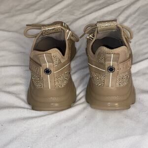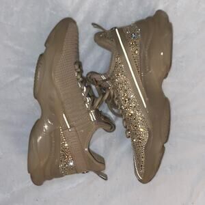 Preowned in excellent likeness new condition. Worn one time. Super cute and fun chunky blush colored sneakers filled with rhinestone. No rips, stains or tears in the shoes. Bottoms show light signs of wear from normal use. Insoles have no toe markings or signs of wear. Please note that these shoes run about half a size smaller. Please see pictures for details.