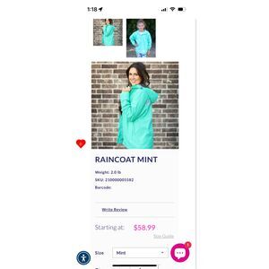 Girly Girl Originals Mint Rain Coat with Reflective Stripes Over Sized Sz S