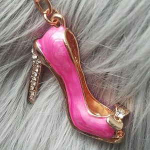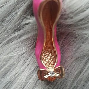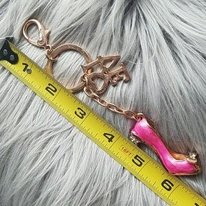 NEVER USED girly girl key chain in good condition with rose gold hardware & faux, but popping, diamonds all in tact. Says LOVE and shoe is gorgeous pink with bow. Pair this with your keys or simply dress up a bag!