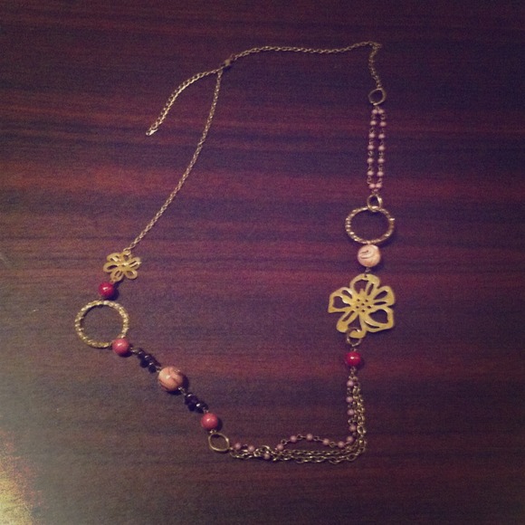Adjustable chain necklace with purple beads and embellishments mixed. Very cute to spruce up regular t shirts :)