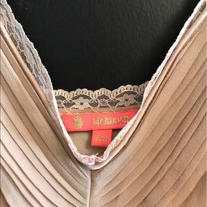 Tan with rose trim. Fully lined with embroidery details. Fun and flirty.