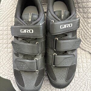 Giro unisex Ranger (gravel) cycling shoes (Techne Road Shoe). Premium Giro cycling setup. Includes: Giro Ranger / Techne Road Cycling Shoes and Crank Brothers Candy 1 Clipless Pedals (no rider weight restriction). Size 41 - Unisex Women's 10/Men's 8. Black with 3 velcro straps across top. The three straps provide a range of fits and are easy to use. Cleats on bottom of shoe to clip into pedal. Sport insole. Crank Brothers Candy1 pedals (no restriction rider weight). Synthetic materials. Both shoes and pedals are in excellent condition. No flaws. Used once.