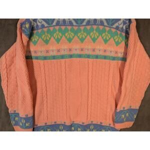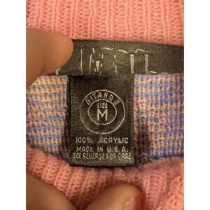Gitano Sweater Women's Medium Pink Acrylic Hearts Ducks Flowers Retro Vintage