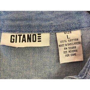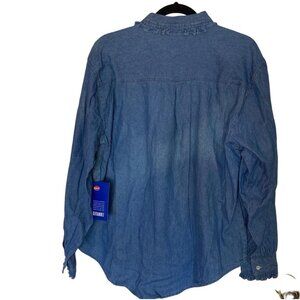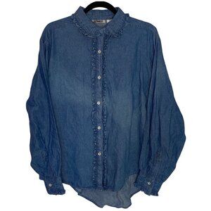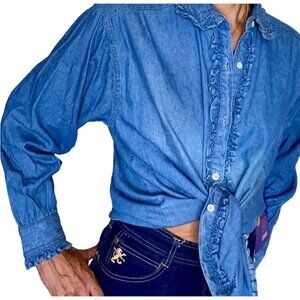 Gitano Vtg Denim Top w Ruffles Button Up Jean Shirt 80s 90s Sz L Office