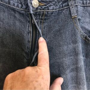 *** good preowned condition, the jeans have been hand hemmed, turned up, and can be let out if desired ***