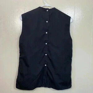 Gitman Bros 100% Cotton Black Sleeveless, Pleated Front Woman’s Size 10 Top Shirt. Buttons up the back. Nice quality Shirt! Good pre owned condition.