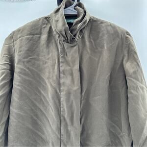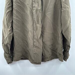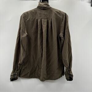 Gitman Bros 100% Silk Olive Green Mock Neck Button Down Shirt Size 4