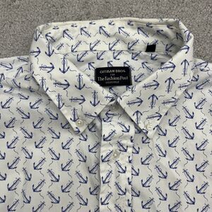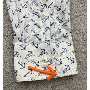 Gitman Bros Button Down Shirt Mens 18.5 35 Nautical Anchor Print Boat Ocean