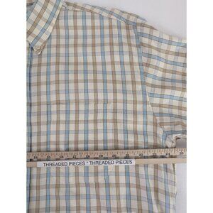 Gitman Bros Button Down Shirt Mens L Beige Blue Check Business Casual