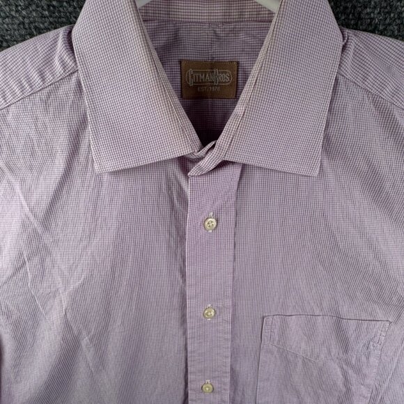 Gitman Bros Button Up Shirt Long Sleeve Men Pink Check 15 34 USA Made Cotton