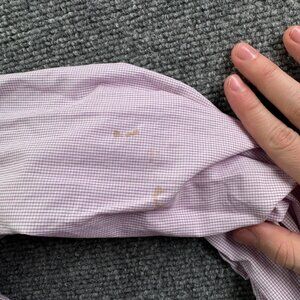 Ok condition. The collar and pits are slightly sweat stained and one sleeve has stains. See photos. Message for any questions, we reply quickly!