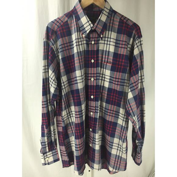 Gitman Bros Cotton Red White Blue Plaid LS Button Front Shirt Sz L