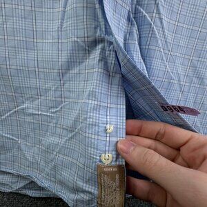 Gitman Bros For Fashion Post Louisville Blue White Plaid 16.5 34 Button Up Shirt