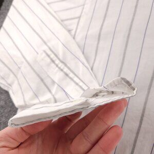 Gitman Bros Lightweight White Gray Blue Cotton Polyester Men 15.5 32 USA Striped