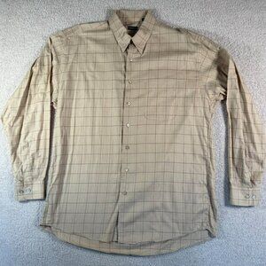 Gitman Bros Mens Long Sleeve Button Dress Shirt Beige Brown Plaid Size XLT USA