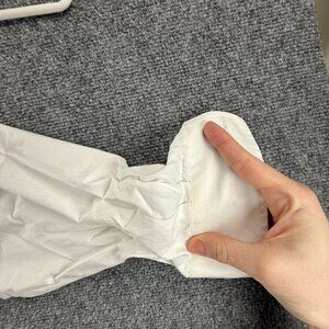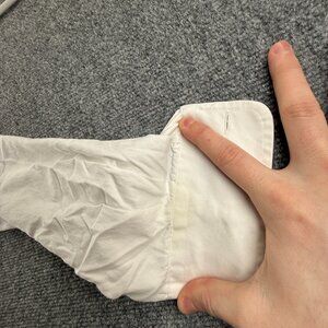 partially torn tag or a stain on the inside of a shirt that isn't noticeable