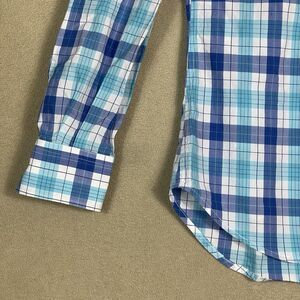 Gitman Bros Shirt Mens Medium Blue Plaid Button Down Designer Preppy Lightweight