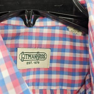Gitman Bros USA MADE Dress Shirt Mens Size Large Red Blue Plaid Button Up