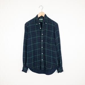 Gitman Bros Vintage Button down Flannel Shirt Navy Green Cotton Size Small